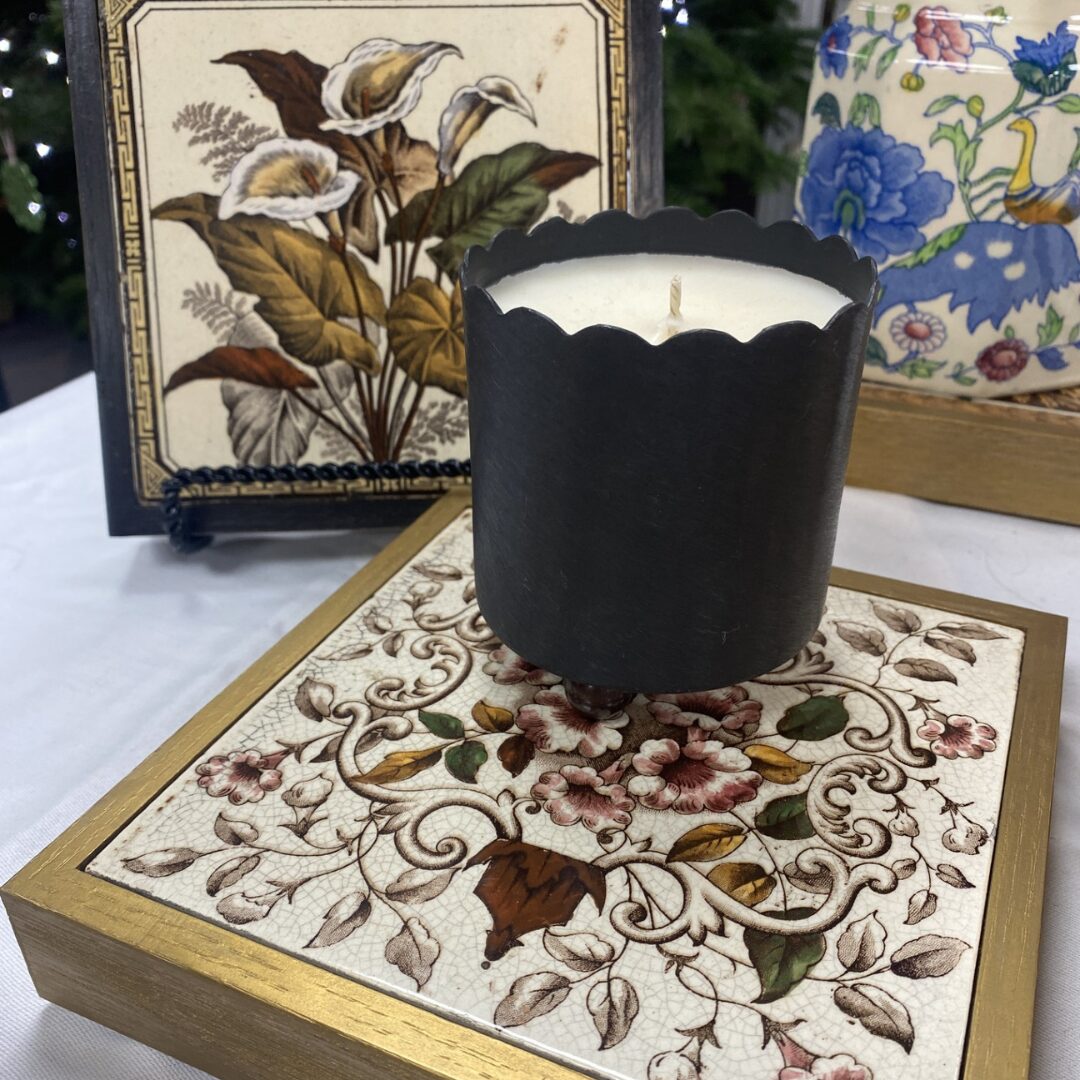 Antique and vintage tile trivets, framed and finished by hand. Unique objects for your table with history + style.